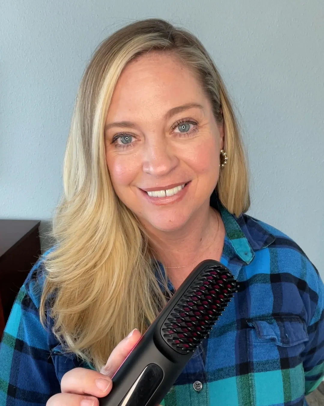 Codzienna stylizacja nie musi niszczyć włosów. Blaski Urok to innowacja, która łączy prostowanie i czesanie w jednym, bez nadmiernego przegrzewania włókna włosa. Szczotka rozprowadza ciepło równomiernie, dzięki czemu wygładza włosy z mniejszym ryzykiem łamania, przesuszenia i elektryzowania.